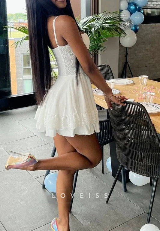 V-Neck Spaghetti Straps Lace Appliques A-Line Party Homecoming Dress