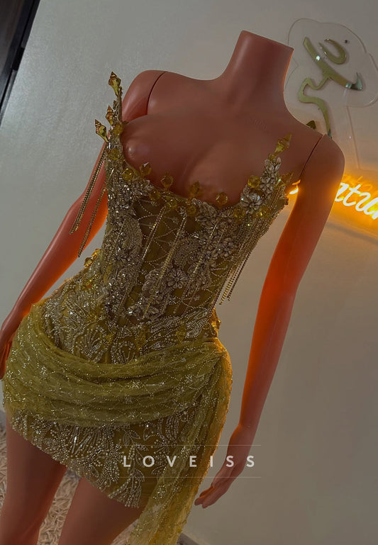 Square Straps Floral Embellished Sheath Party Homecoming Dress