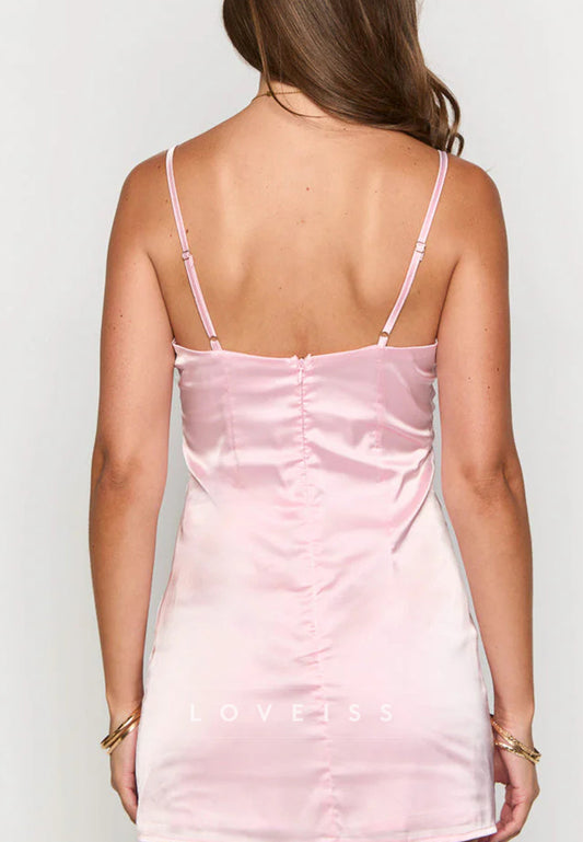 V-Neck Spaghetti Straps Ruched Sleek Sheath Party Homecoming Dress