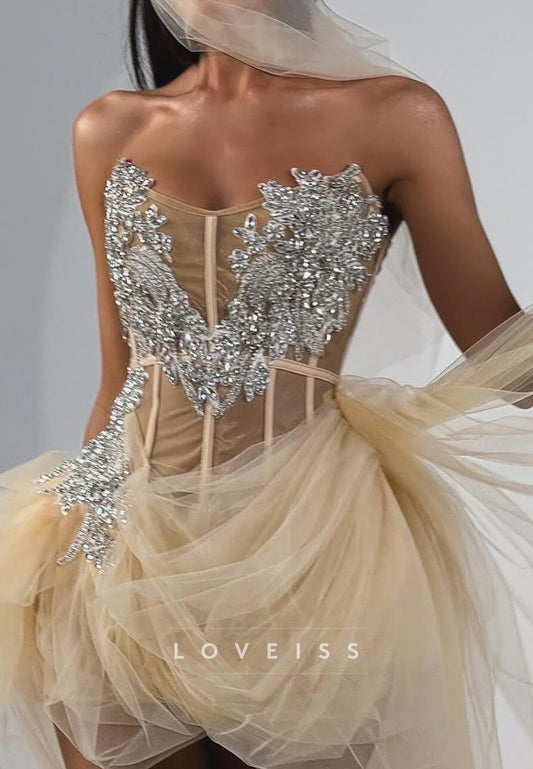 Sweetheart Strapless Beaded Pleated A-Line Party Homecoming Dress