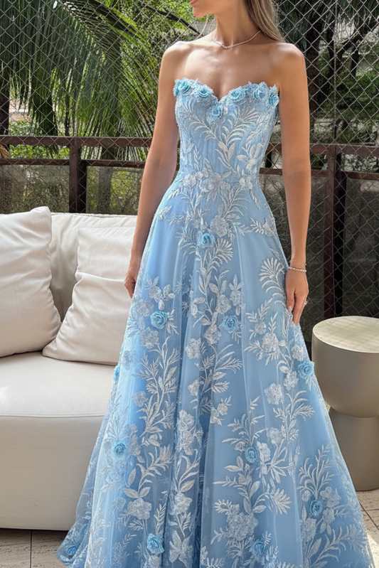Sweetheart Sleeveless Floral Tiered A-Line Prom Dress