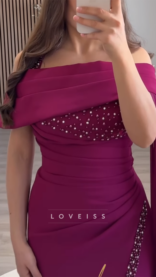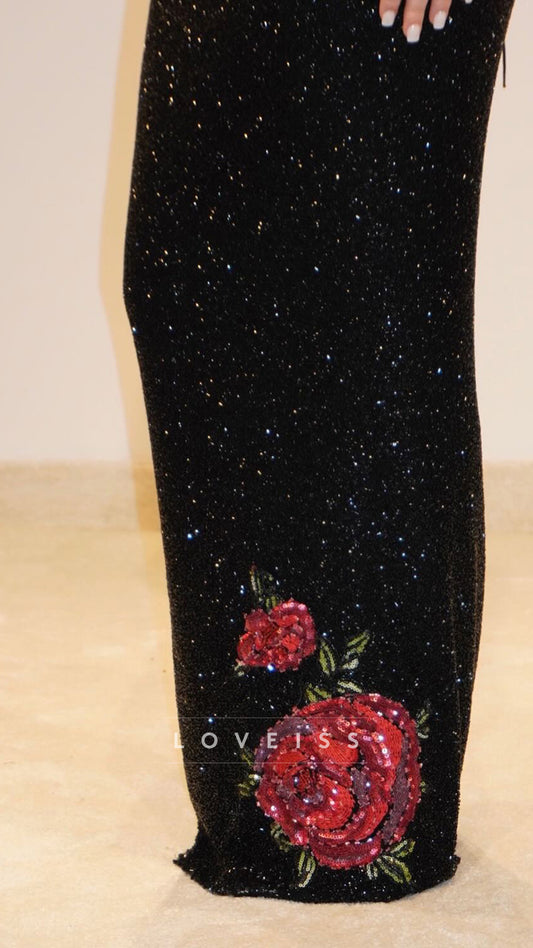 Straight Across Beaded Embroidery Sheath Evening Dress