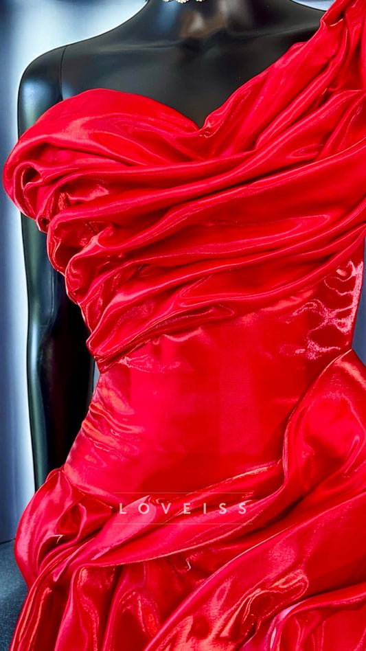Strapless Sleeveless Satin A-Line Red Prom Dress