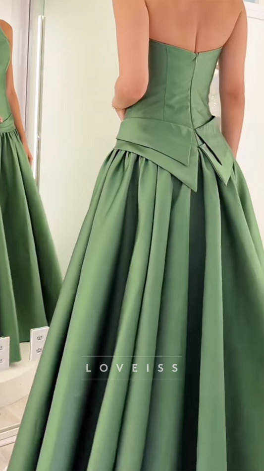Sweetheart Strapless Pleated Maxi Evening Dress