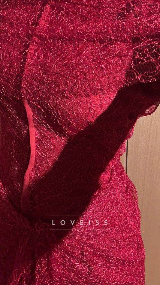 V-Neck Corset Lace Appliques Mermaid Prom Dress