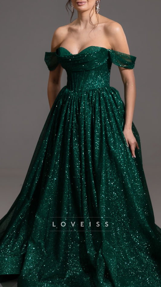 Off-Shoulder Sparkly Sleeveless A-Line Prom Dress