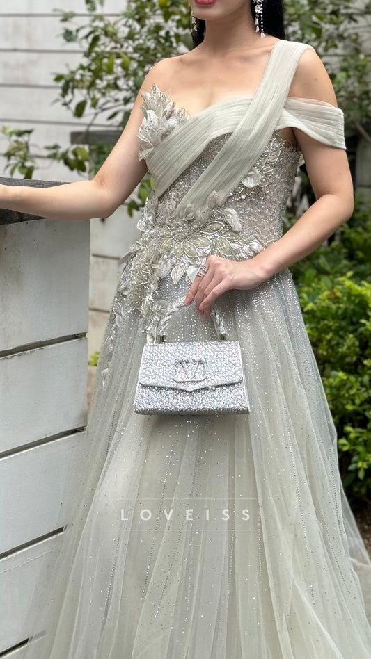 One Shoulder Tulle Appliques A-Line Prom Dress