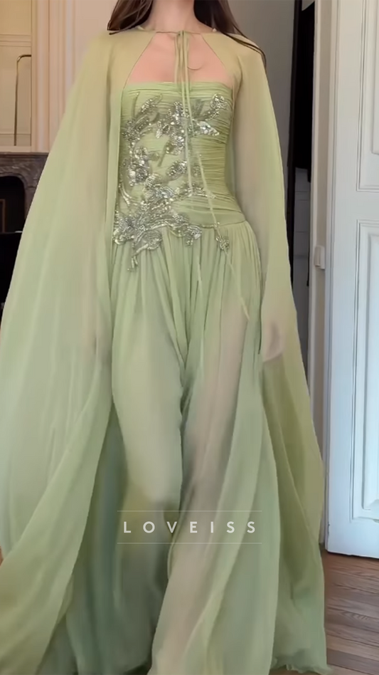 Strapless Appliques Pleated A-Line Prom Dress with Shawl
