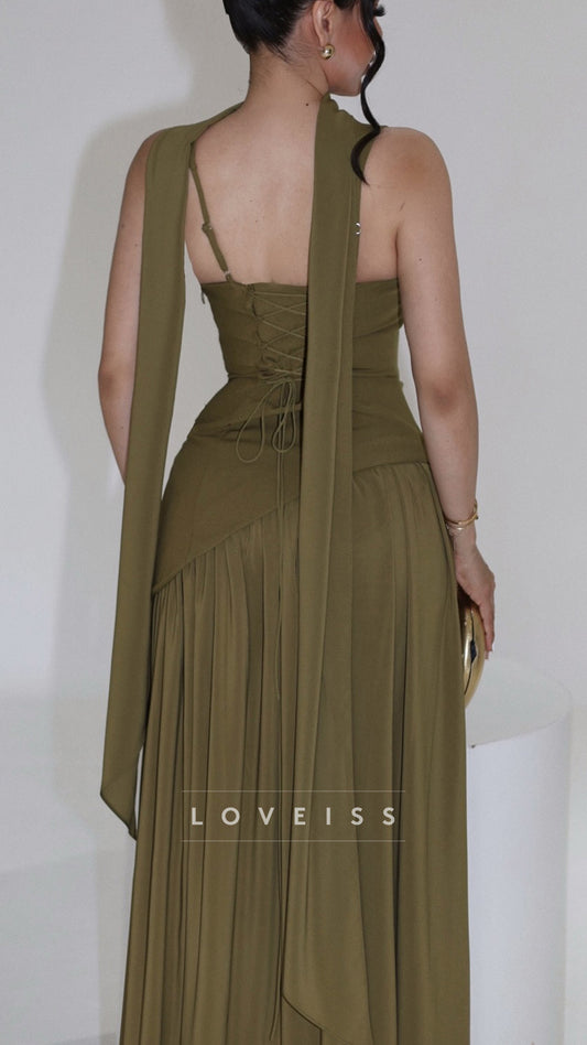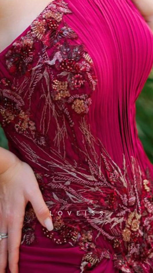 Asymmetrical Sleeveless Pleated Side Slit Sheath Prom Dress