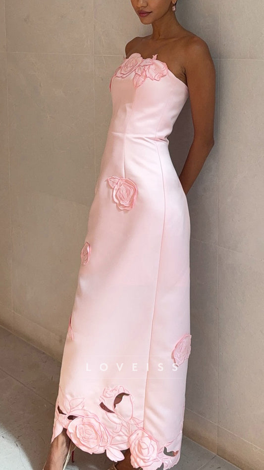 Strapless Sleeveless Appliques Sheath Evening Dress