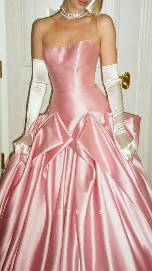 Strapless Sleeveless Satin Pink A-Line Prom Dress