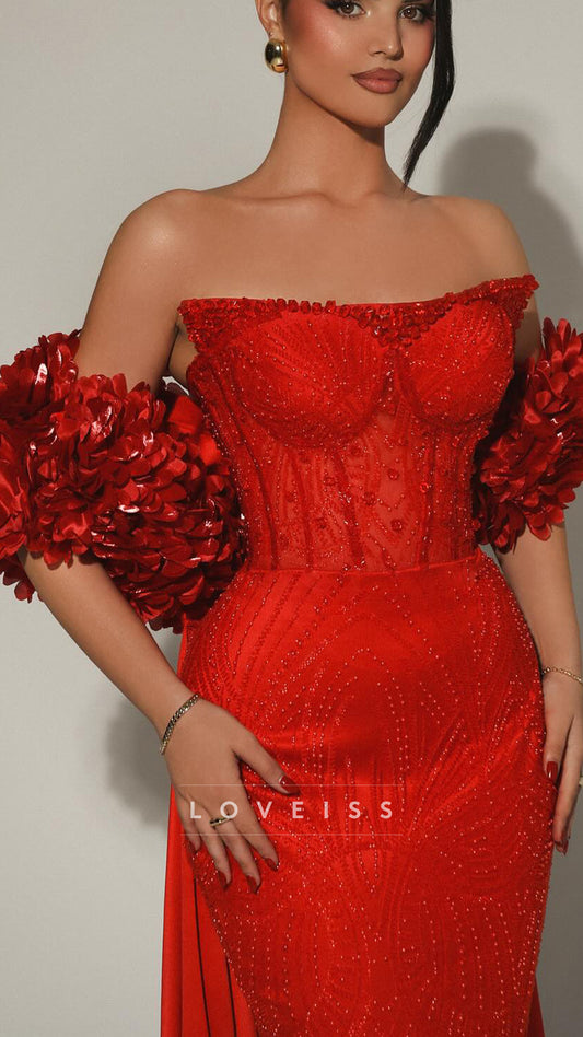 Off-Shoulder Corset Floral Embellished A-Line Prom Dress