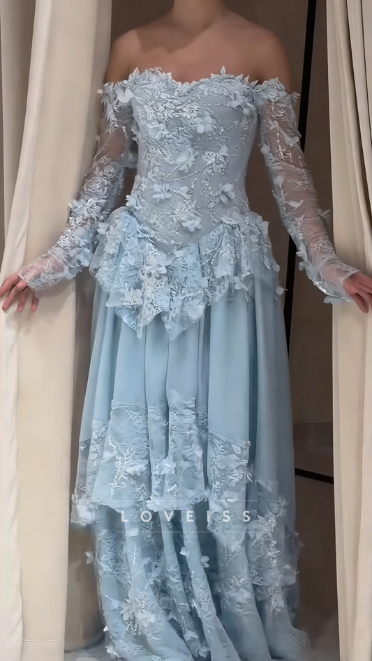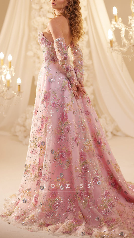 Sweetheart Long Sleeves Floral Embellished A-Line Prom Dress
