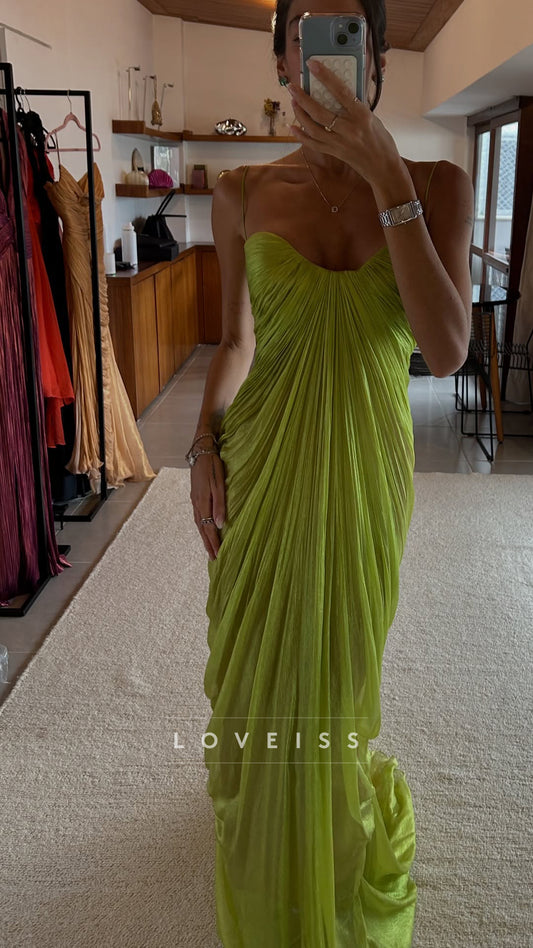 Sweetheart Straps Pleated A-Line Simple Prom Dress