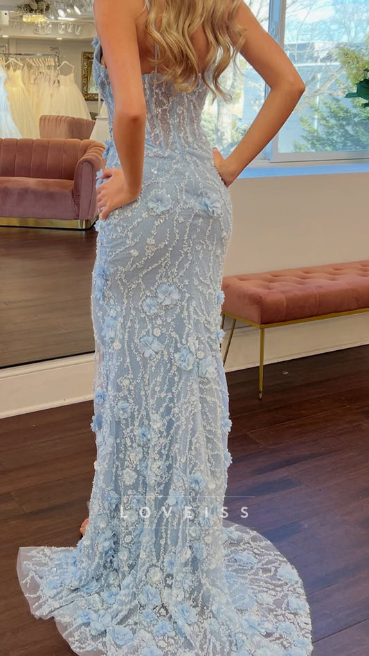 Sweetheart Straps Sequins Appliques Mermaid Prom Dress