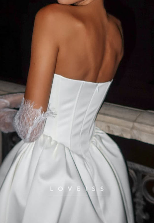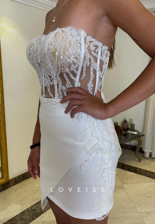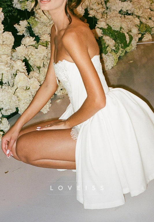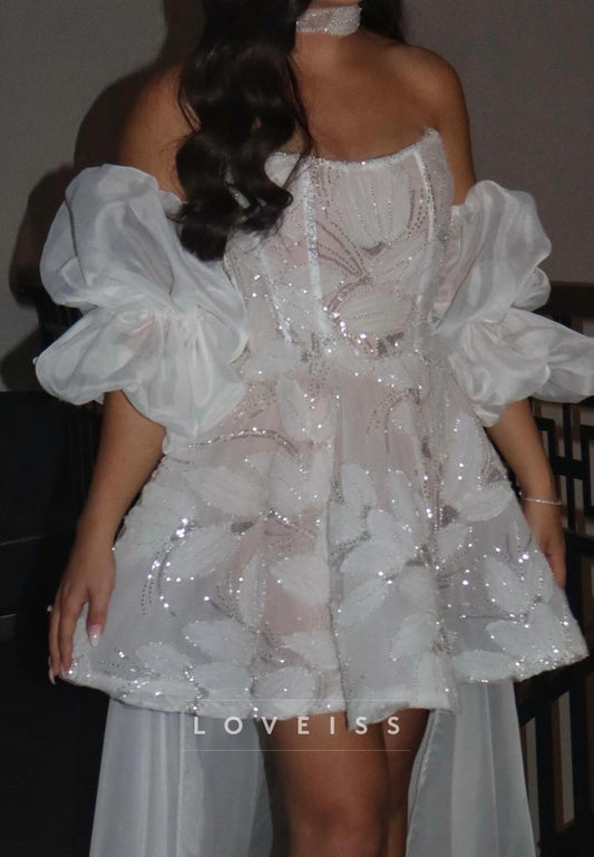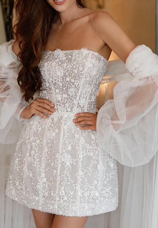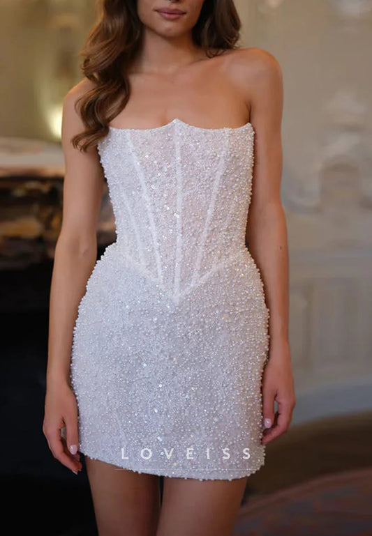 A-Line Strapless Straps Sleeveless Fully Sparkly Mini Wedding Dress