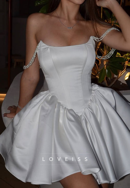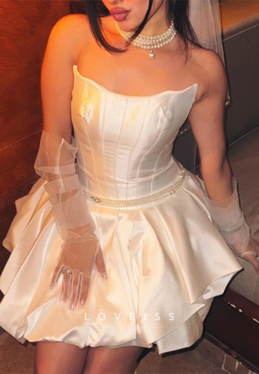 Straight Across Pearl A-Line Short Wedding Dress