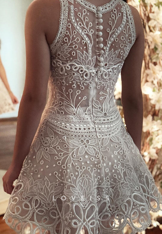 Scoop Lace Appliques Sleeveless A-Line Short Wedding Dress