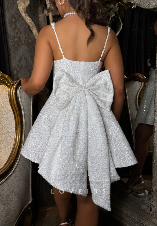V-Neck Spaghetti Straps A-Line Short Wedding Dress