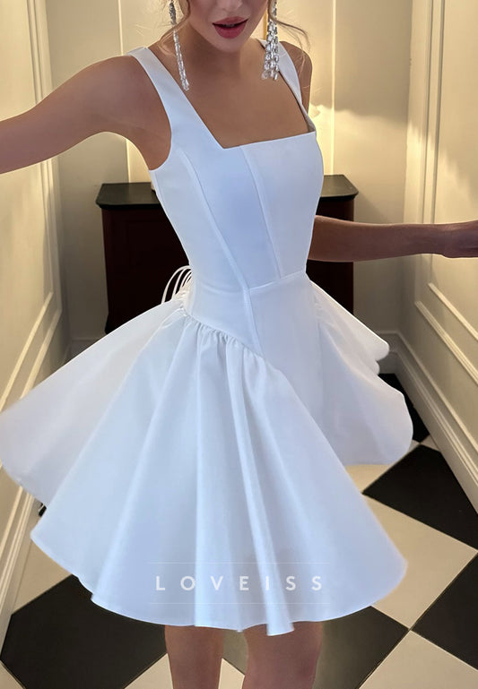 Square Straps Pleated A-Line Short Wedding Dress