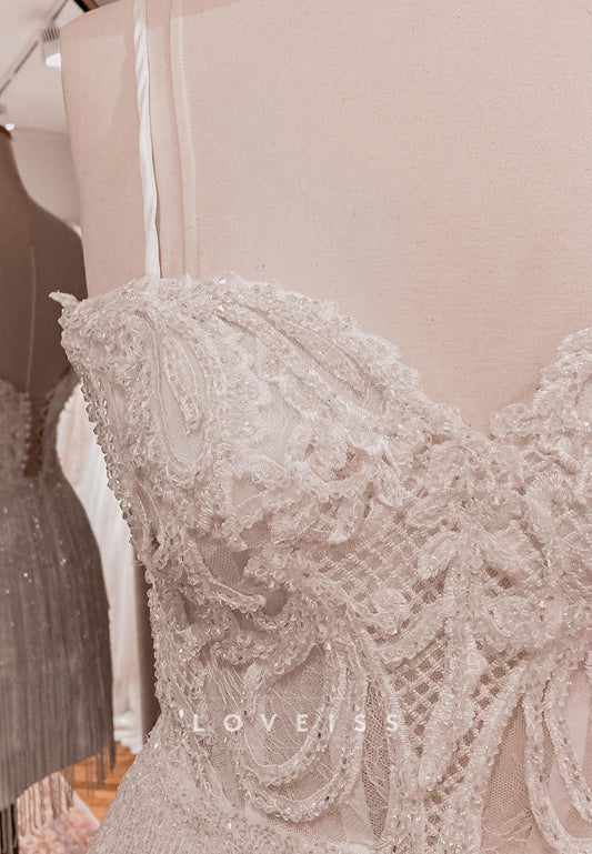 Sweetheart Straps Beaded Finge Sparkly A-Line Wedding Dress