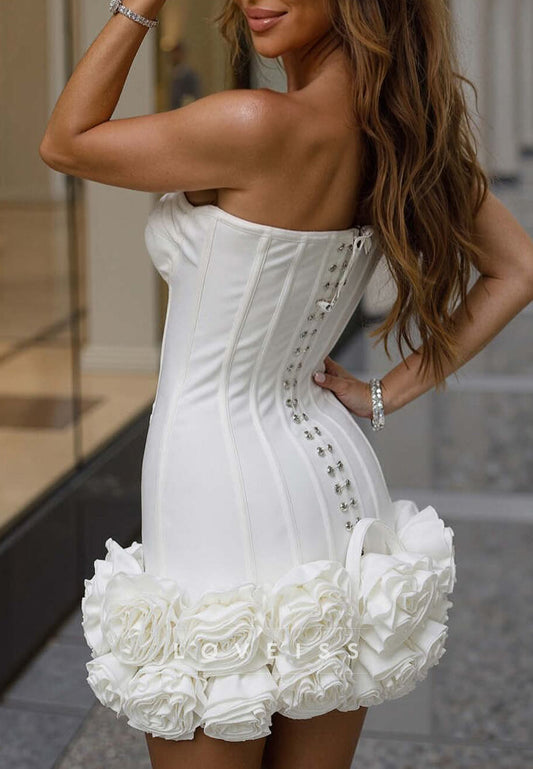 Sweetheart Floral Embellished Sheath Short Wedding Dress