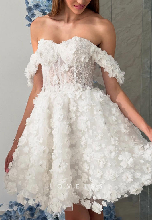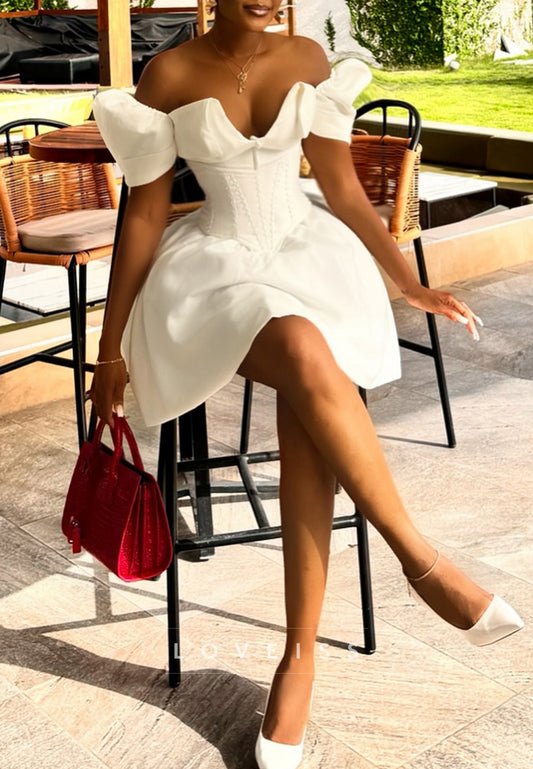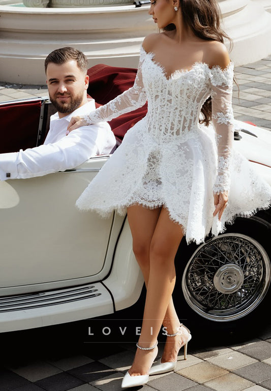 Off-Shoulder Corset Lace Appliques A-Line Short Wedding Dress