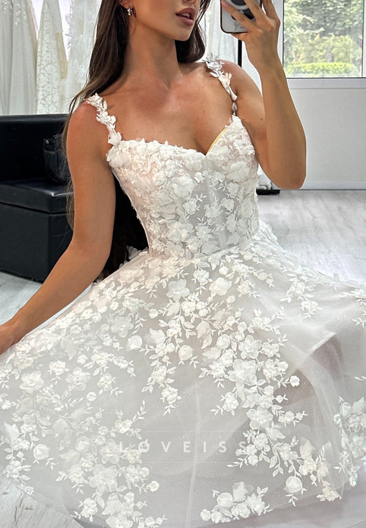 Square Straps Floral Appliques Short A-Line Wedding Dress