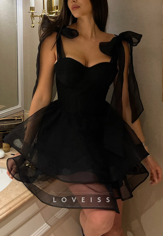 Sweetheart Straps Tiered Pleated A-Line Party Homecoming Dress
