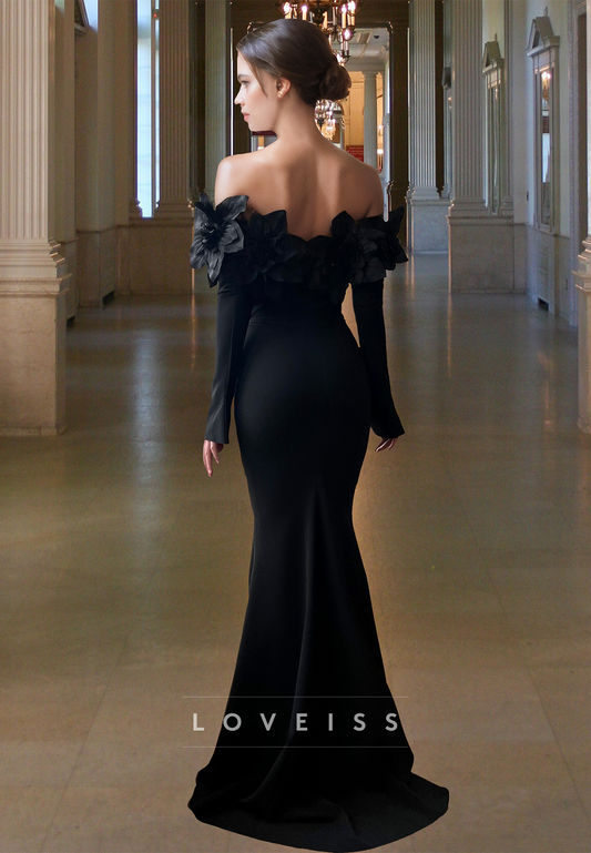 Off-Shoulder Long Sleeves Floral Embellished Mermaid Evening Dress