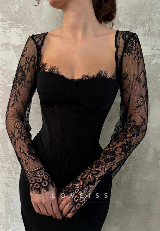 Square Long Sleeves Lace Appliques Bodycon Mermaid Formal Dress