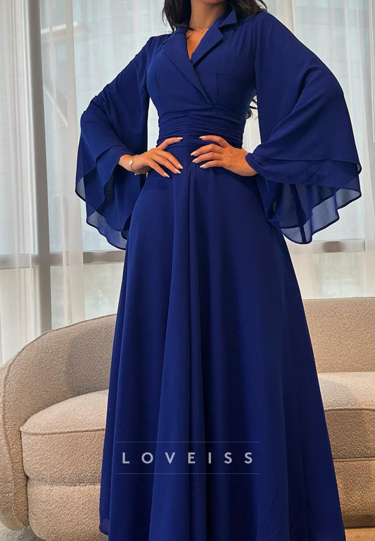 Blazer V-Neck Long Sleeves Chiffon A-Line Mother of Bride Dress
