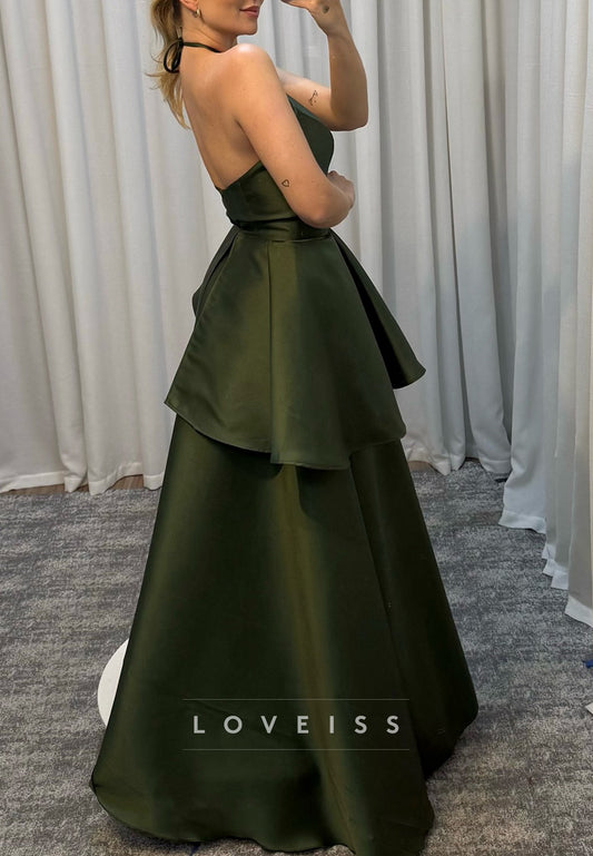 Halter Sleeveless Tiered Satin A-Line Mother of Bride Dress