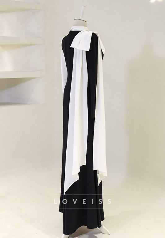 High Neck Long Sleeves Bow Beaded Sheath Mother of Bride Dress