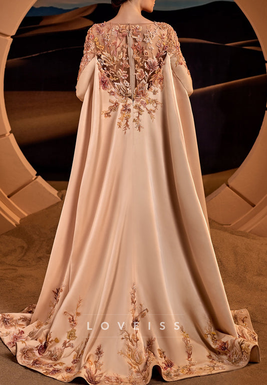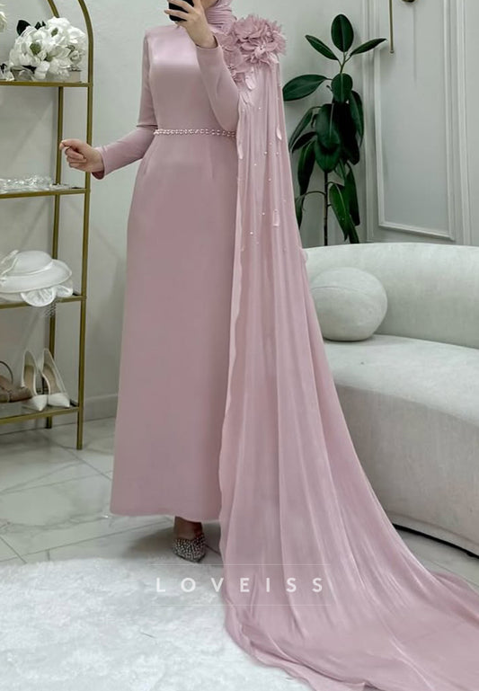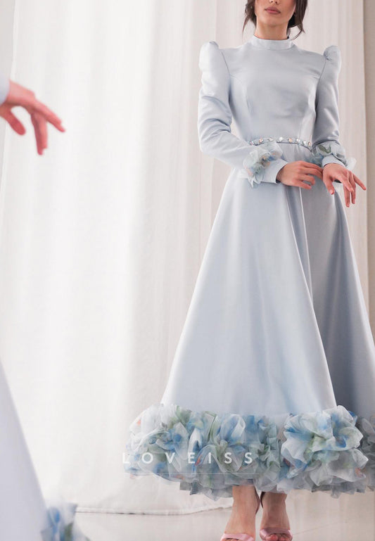 High Neck Long Sleeves Floral Embellished A-Line Mother of Bride Dress