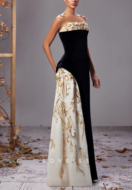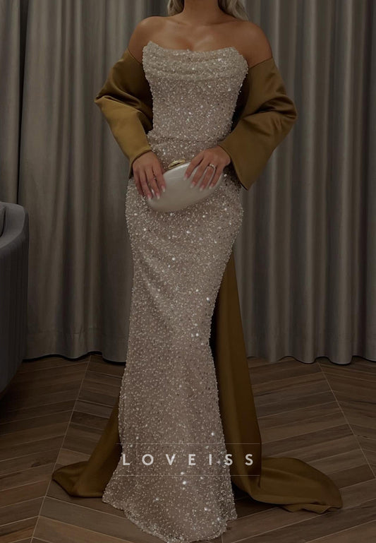 V-Neck Strapless Sequins Side Slit Sparkly Sheath Prom Dress