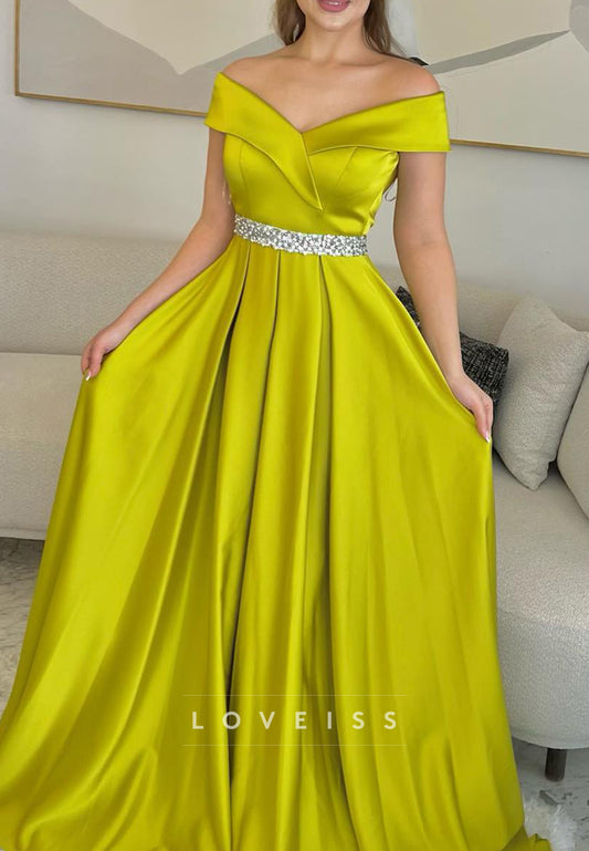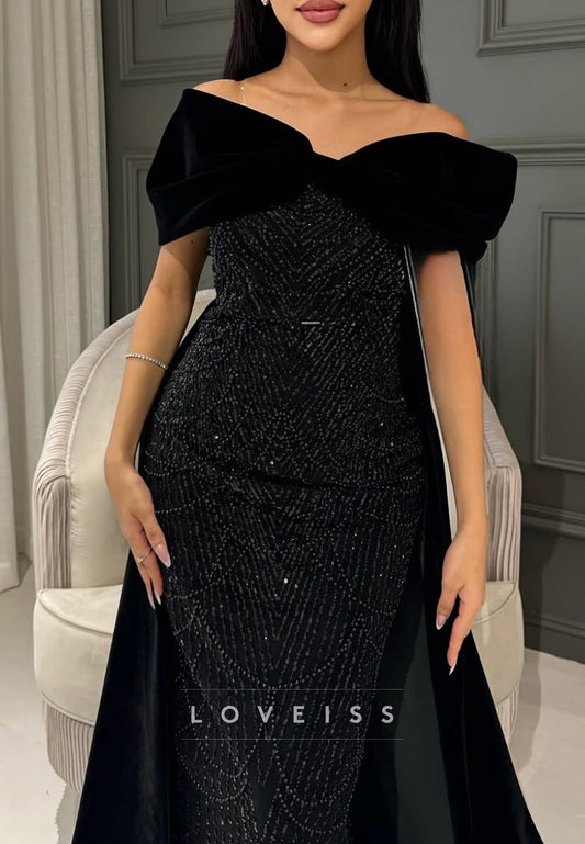 Off-Shoulder Sleeveless Beaded Sparkly Mermaid Prom Dress