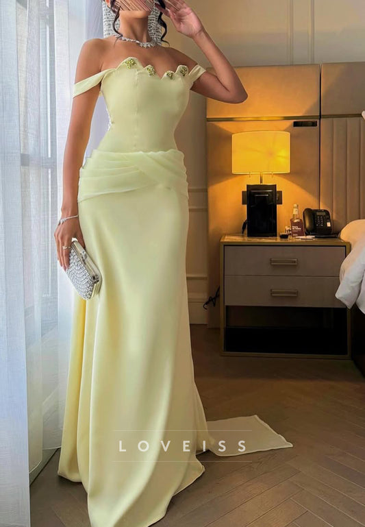 Off-Shoulder Strapless Beaded Embroidery Mermaid Evening Dress