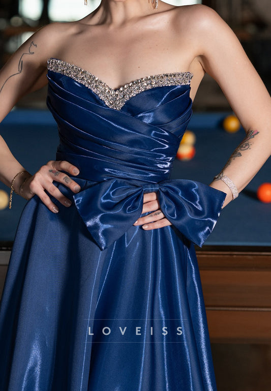 Sweetheart Strapless Pleated Beaded Sleek A-Line Mother of Bride Dress