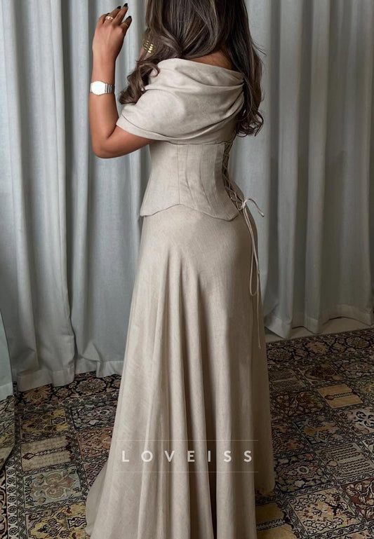 Off-Shoulder Sleeveless Pleated A-Line Mother of Bride Dress