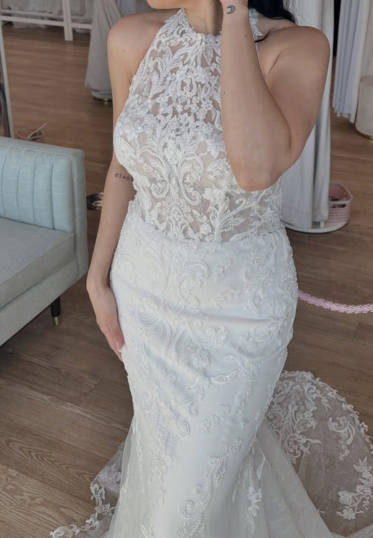 Halter Sleeveless Lace Appliques Mermaid Wedding Dress