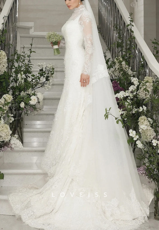 High Neck Long Sleeves Sleek Mermaid Wedding Dress