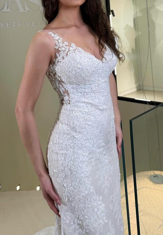 V-Neck Sleeveless Lace Appliques Mermaid Wedding Dress