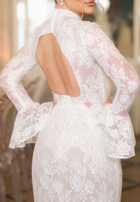 High Neck Long Sleeves Lace Appliques Sheath Wedding Dress
