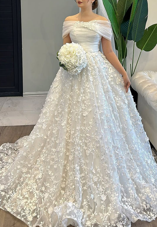 Off-Shoulder Beaded Embroidery Ball Gown Sparkly Wedding Dress