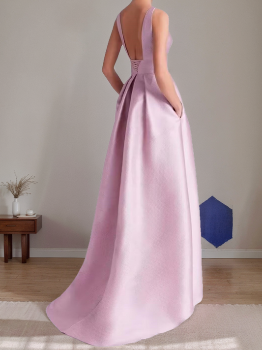 Sheath/Column V-Neck Sleeveless Satin Mother Of The Bride Dresses