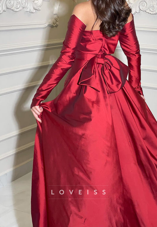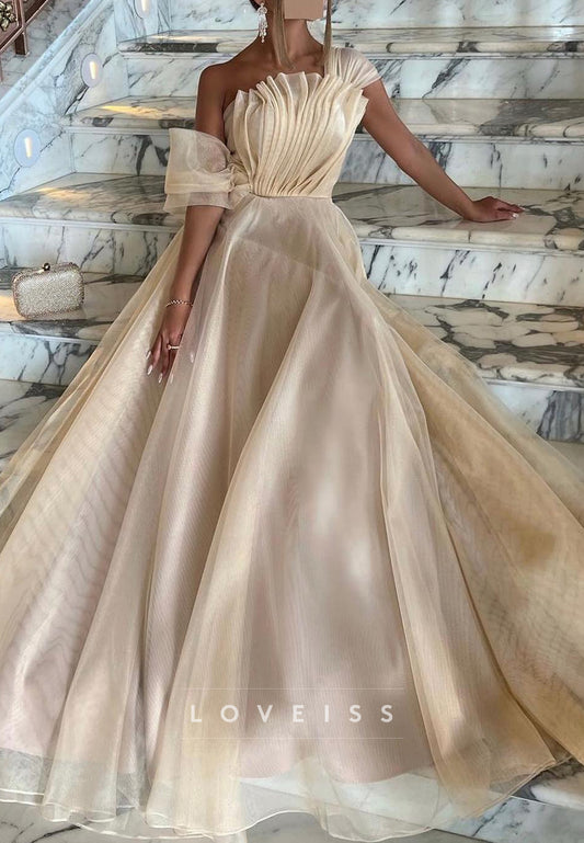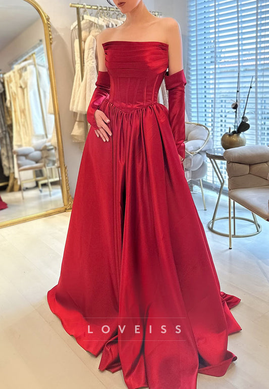 Off-Shoulder Pleated Strapless Side Slit A-Line Evening Dress
