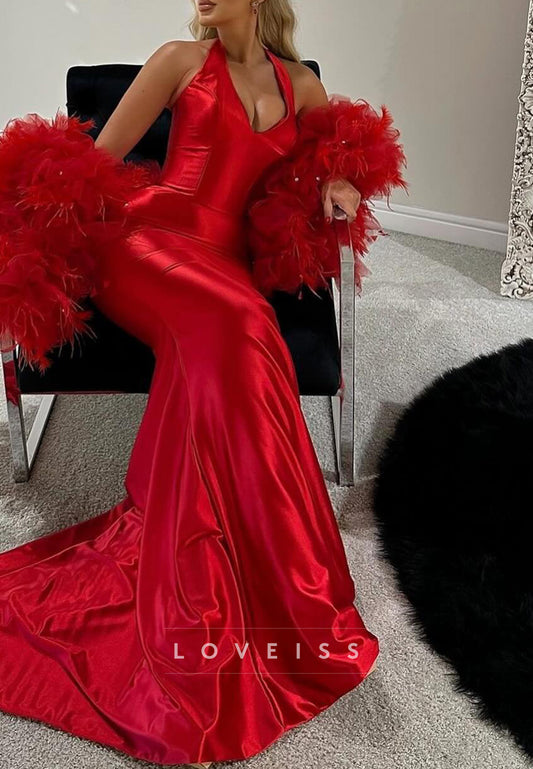 Halter V-Neck Sleeveless Fitted Mermaid Evening Dress