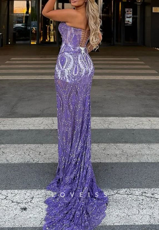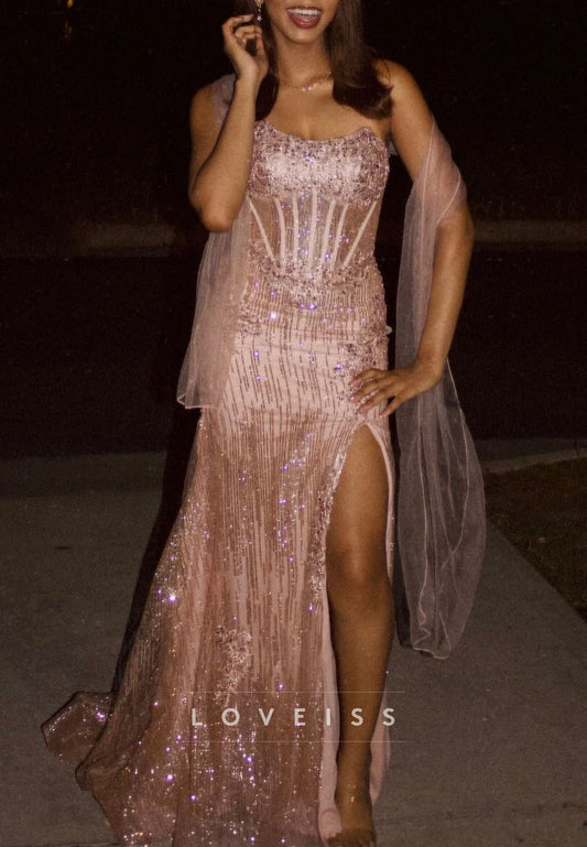 Sweetheart Side Slit Sequins Sparkly Sheath Prom Dress