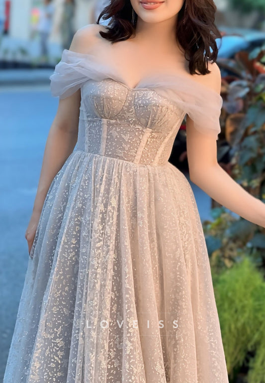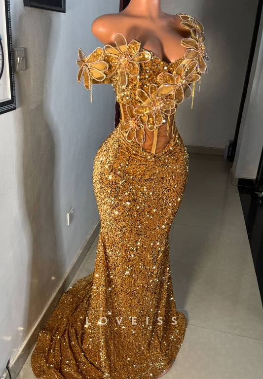 Off-Shoulder Beaded Embroidery Sparkly Sheath Prom Dress